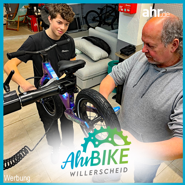 Neben dem Verkauf von Fahrrädern namhafter und hochwertiger Marken, hat sich AhrBike dem Thema „Service rund um das Fahrrad“ verschrieben. Was das bedeutet erklärt Udo Willerscheid: „Wir warten und reparieren in einer neuen, modernen etwa 300 Quadratmeter großen Service-Werkstatt alle Fahrrad-Marken.“  Dabei werden beispielsweise E-Bikes mit Hilfe modernster Diagnosegeräte gecheckt und gewartet. „So gewährleisten wir genaue Fehleranalysen und somit eine schnelle und effektive Wartung des Fahrrades. Aber auch alle anderen Fahrräder werden kompetent untersucht gewartet und gegebenenfalls repariert. Möglich macht das die jahrelange Erfahrung und das Know-how der dortigen Mitarbeiter. „Unser Werkstatt-Team bringt jeden, auch noch so alten Drahtesel, wieder in Schwung.